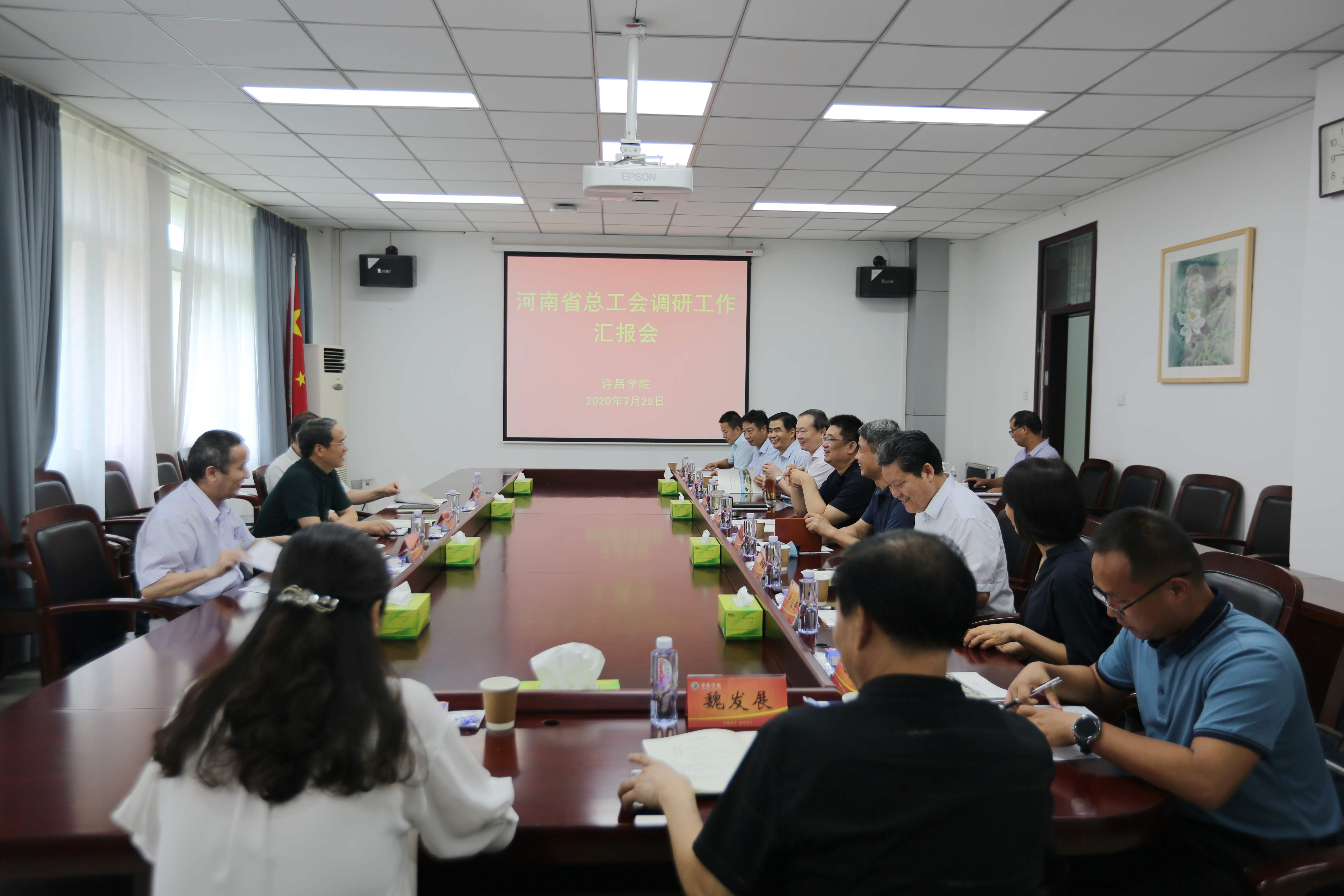 7月29日,河南省总工会党组成员、副主席杨会卿,二级巡视员乔建民,省教科文卫体工会二级调研员郑锦顺一行到永利官网调研指导工作。学校在办公楼第四会议室召开调研汇报会,党委书记闫纪建,院长岳修峰,党委副书记、工会主席郭涛,副院长高金星出席会议,院长岳修峰主持会议。