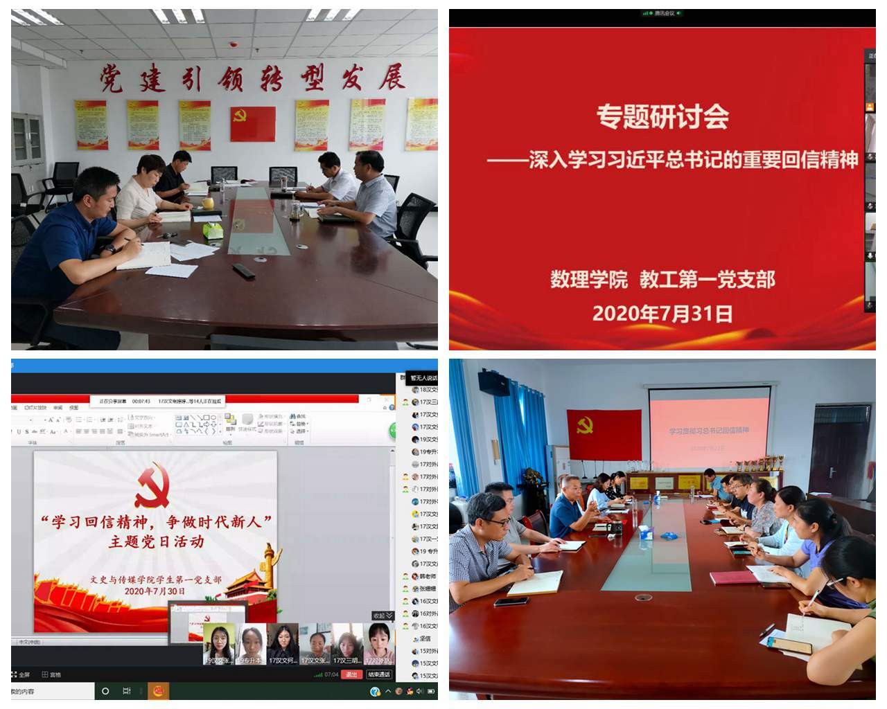 据了解,近日,永利官网各基层党委、直属党支部、校属各单位以及全校各级团组织纷纷结合工作实际,通过中心组学习、党课报告、组织生活、网络视频会议、专题研讨、座谈交流、撰写学习体会等多种形式,精心组织学习活动,迅速掀起了学习宣传贯彻习近平总书记重要回信精神的热潮。