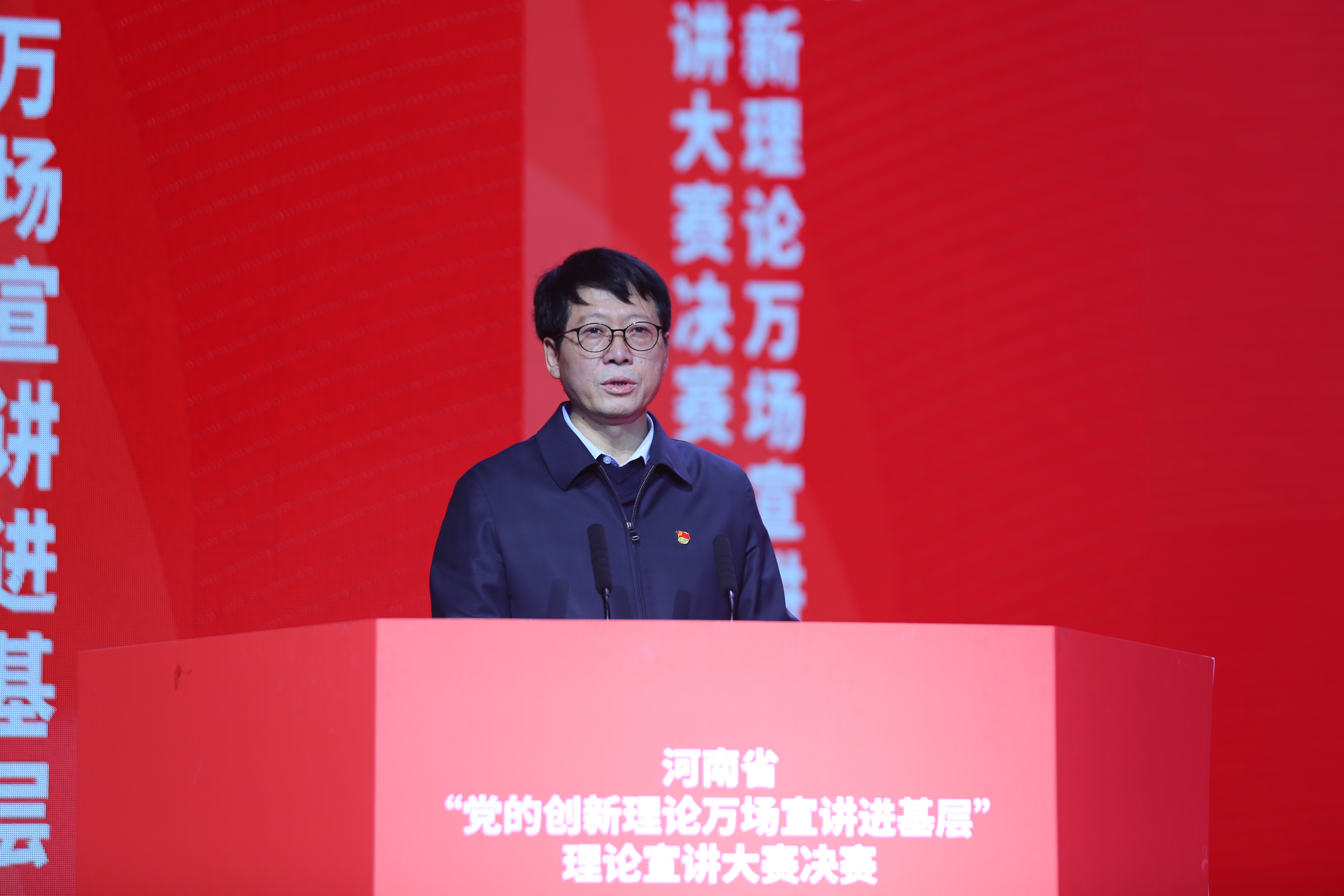 河南省委宣传部副部长尹书博对本次大赛给予了充分肯定。他指出,“党的创新理论万场宣讲进基层”活动是近年来我省理论宣讲工作着力打造的特色品牌,有力地推动了习近平新时代中国特色社会主义思想在中原大地落地生根,在全国产生了一定的影响力。就进一步做好“党的创新理论万场宣讲进基层”理论宣讲工作,他强调,要紧跟理论创新步伐,争做党的创新理论的坚定信仰者;要不断提升宣讲艺术,争做党的创新理论的热情传播者;要积极投身伟大事业,争做党的创新理论的模范践行者,用基层宣讲中的青春风采为中原更加出彩增色“添彩”,为党的十九届五中全会精神在中原大地落地生根贡献力量。