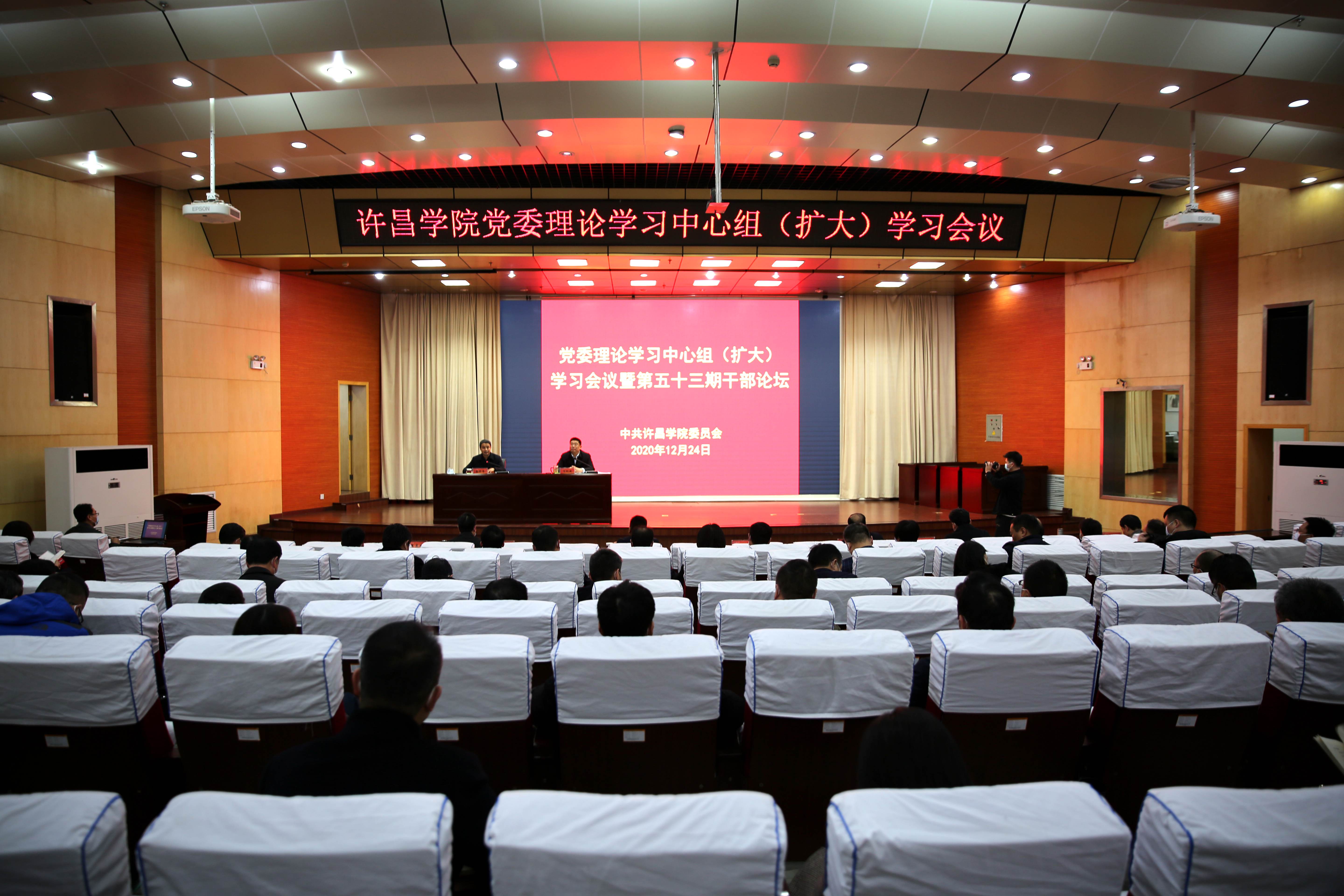 12月24日,永利官网在图书馆二楼学术报告厅举行党委理论学习中心组(扩大)学习会议暨第五十三期干部论坛,校党委书记闫纪建以《以党的十九届五中全会精神为指导 科学谋划学校“十四五”事业发展蓝图》为题作专题报告。全体校级领导干部、中层干部参加会议并听取报告。会议由院长岳修峰主持。