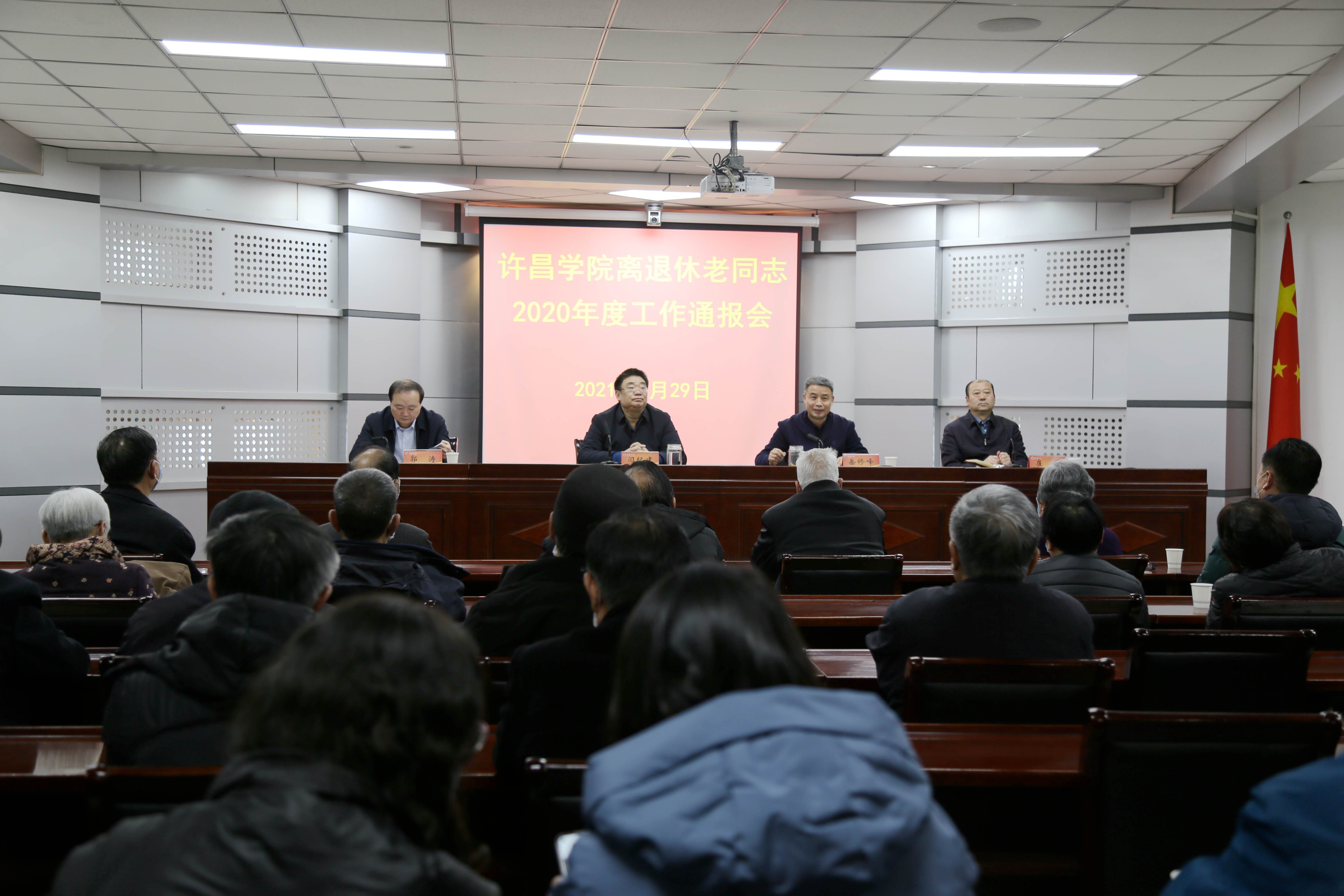 1月29日下午,永利官网在办公楼第三会议室召开离退休老同志2020年度工作通报会。校党委书记闫纪建、院长岳修峰,党委副书记、工会主席郭涛,副院长崔斌出席会议。党政办公室、党委组织部、离退休工作处负责同志和50余名老同志代表参加会议。会议由党委副书记、工会主席郭涛主持。