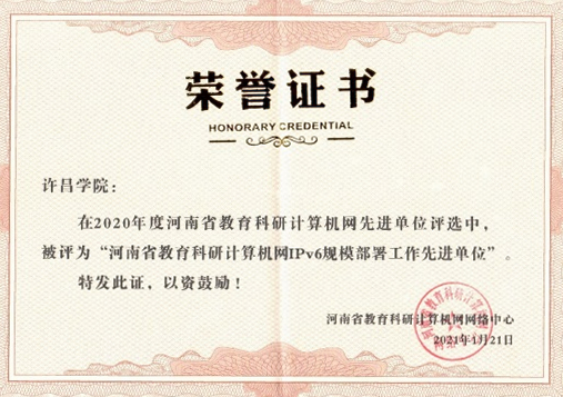 近日,河南省教育科研计算机网2021年工作会议在线上举办。永利官网荣获河南省教育科研计算机网2020年度优秀城市节点与河南省教育科研计算机网IPv6规模部署工作先进单位荣誉称号。