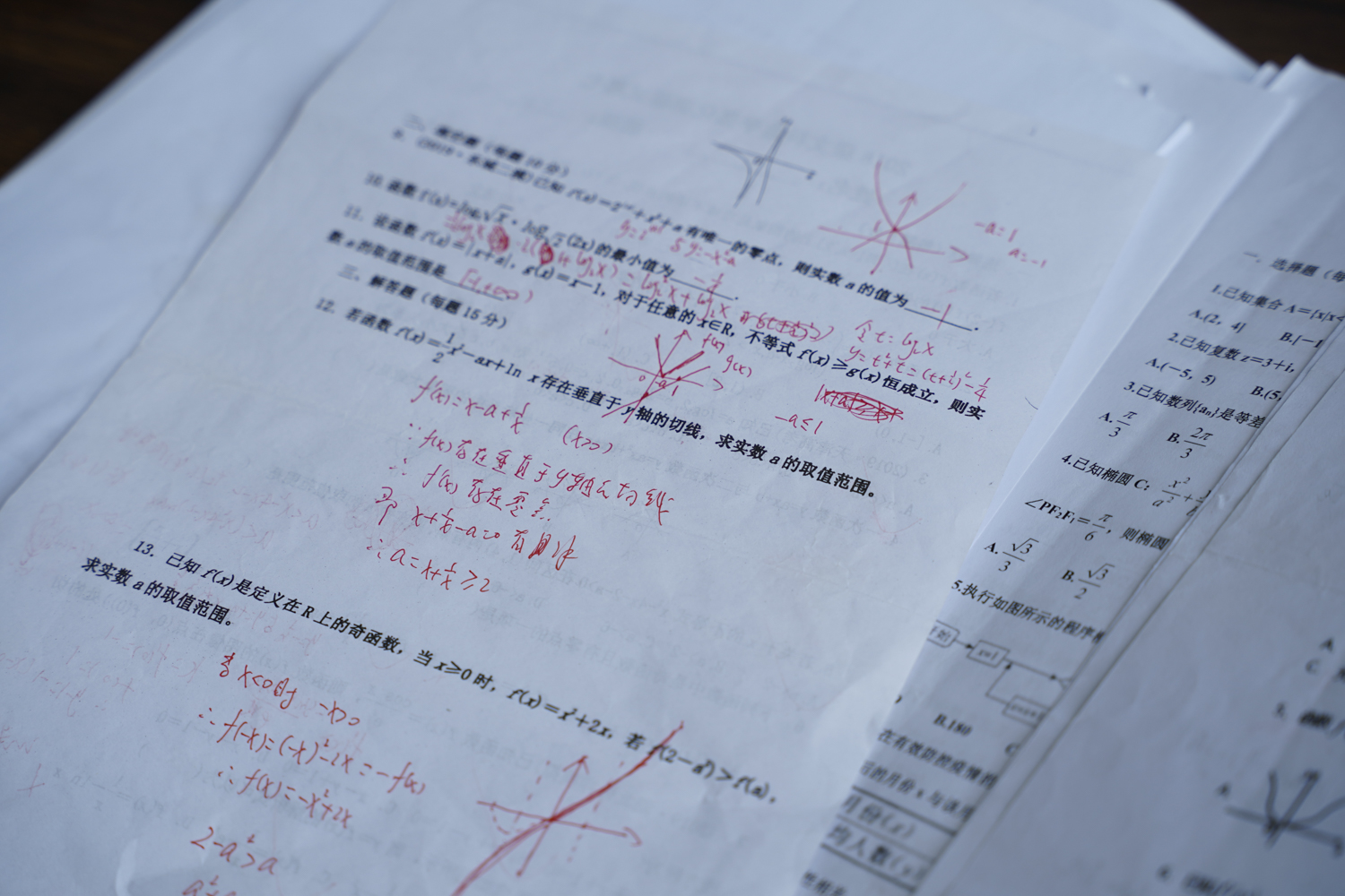 为了解决学生偏科问题,张军强牺牲自己的休息时间对文科普班60名学生进行数学强化训练,解答疑惑,白天试卷改不完,经常夜里带回家批改。