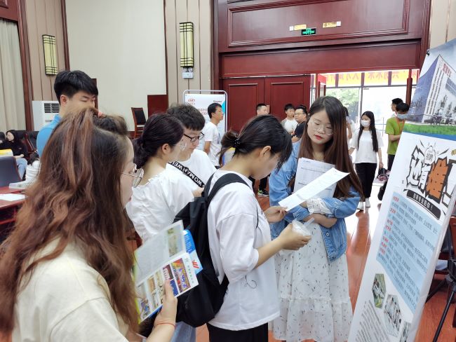 招聘会现场,招聘单位设置了服务台、展板和招聘简介,方便求职毕业生了解更多相关的就业信息。毕业生们求职热情饱满,不少毕业生通过对比工作内容和薪资待遇,现场填写了相关信息。