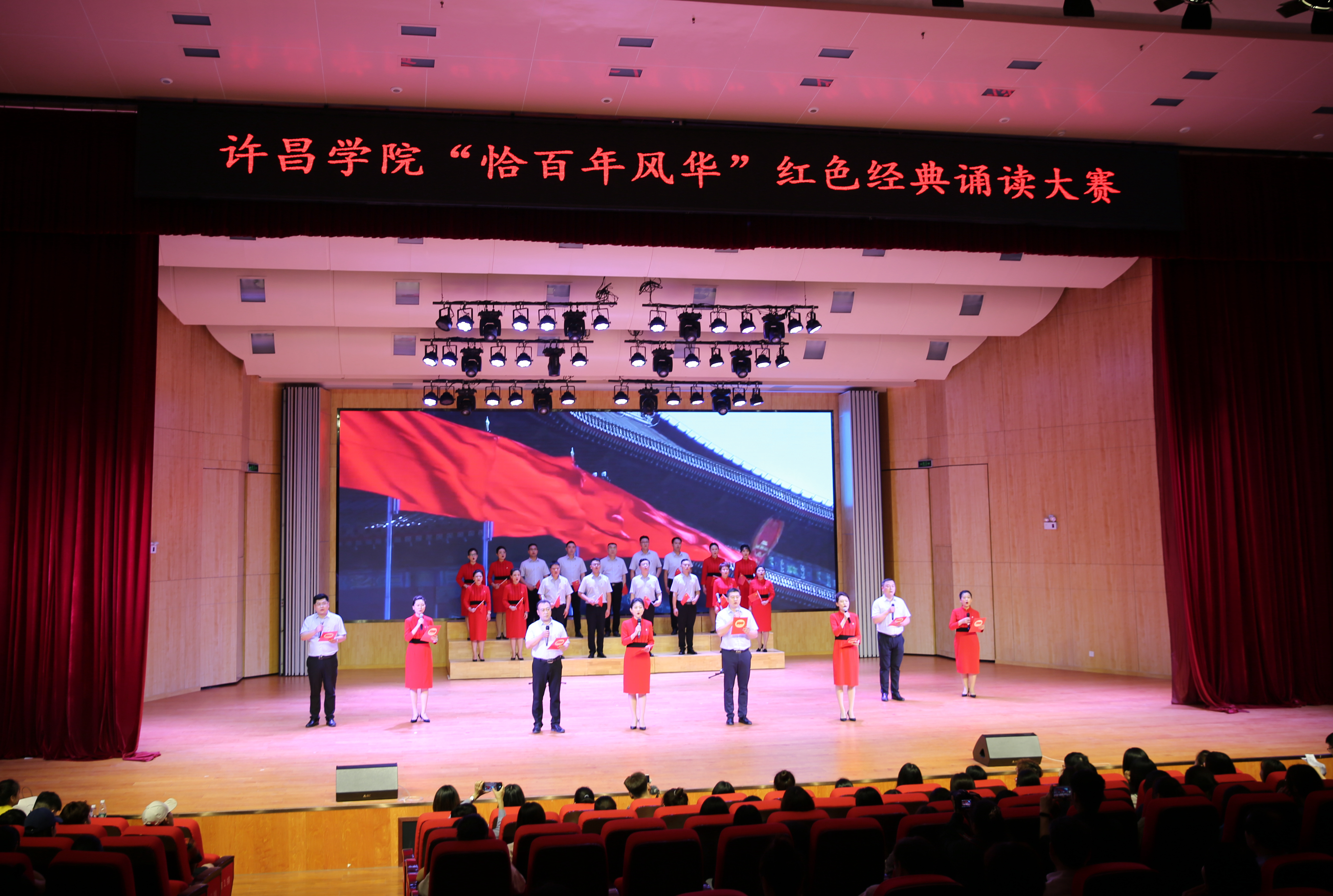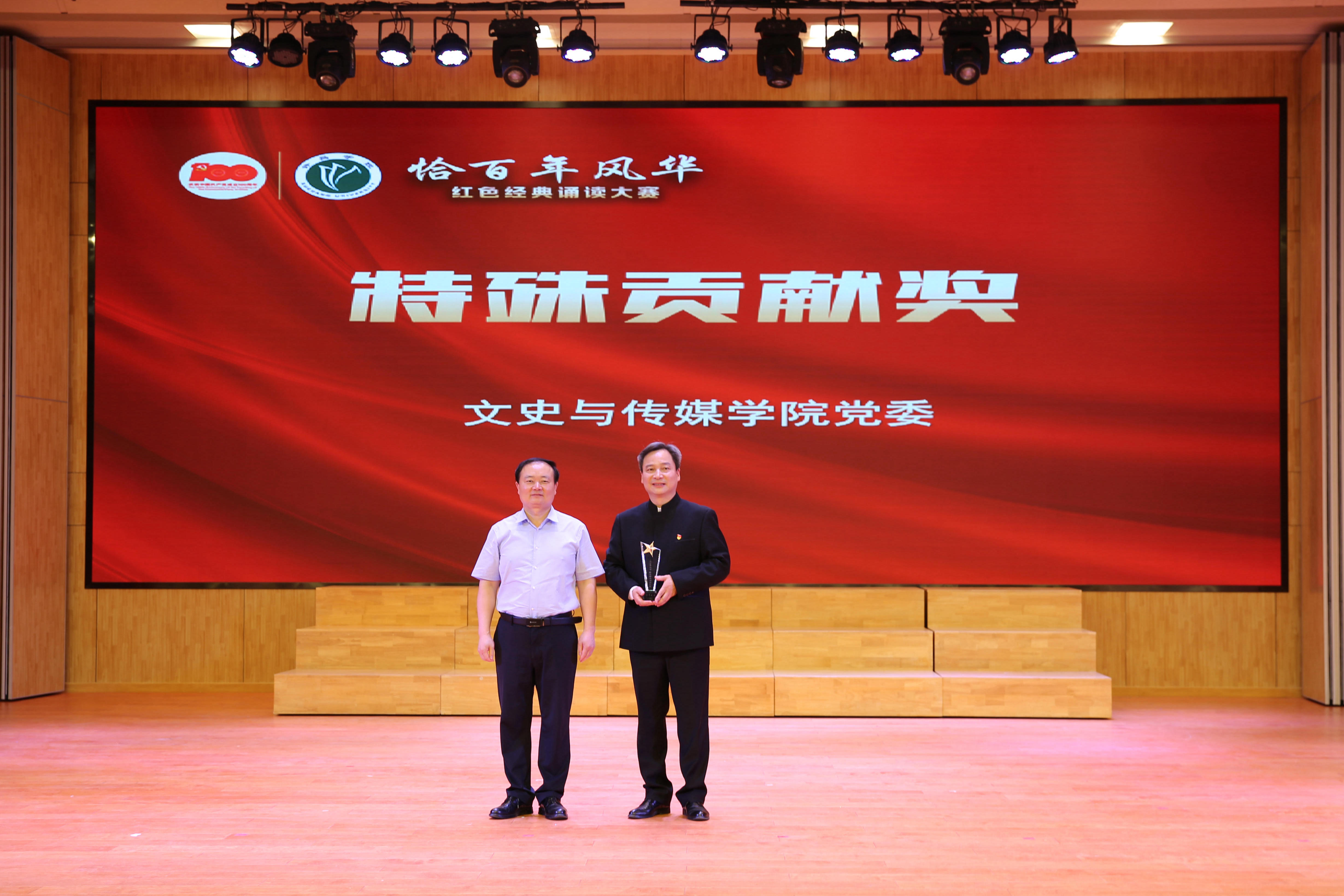 为庆祝中国共产党成立100周年,展现党的百年风华,5月27日晚,由永利官网党委宣传部、校工会主办,文史与传媒学院承办的“恰百年风华”红色经典诵读大赛在艺术楼音乐厅举行。校党委副书记、工会主席郭涛,副院长高金星、潘春彩,纪委书记王东晓出席活动。学校相关职能部门、二级学院负责人与来自全校的300余名师生共同观看了比赛。