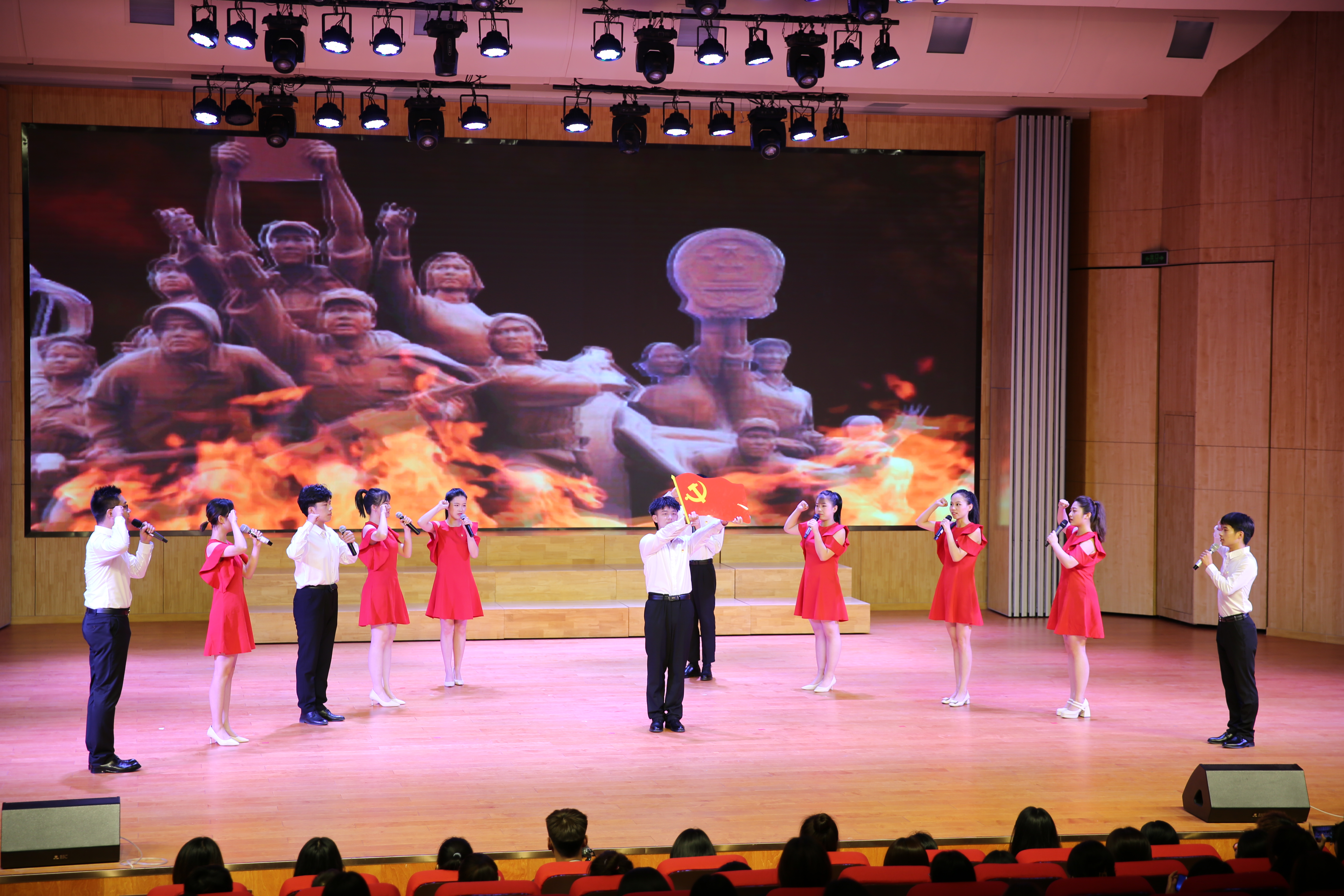 决赛结束后,文史与传媒学院党委、党委宣传部(新闻中心)还带来了《百年风雨初心如磐》和《恰同学少年》两个精彩节目展演,用情景剧的形式再现了革命前辈舍生取义、无私奉献的博大情怀,彰显了青年一代勇担时代重任的责任与担当。