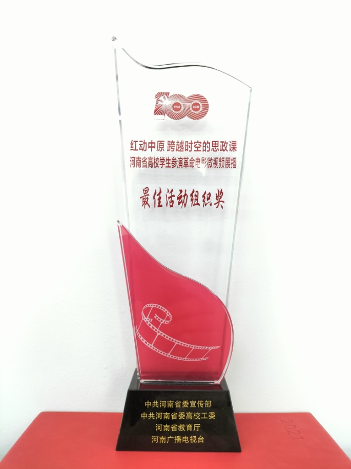 活动现场对“红动中原 跨越时空的思政课”——河南省高校学生参演革命电影微视频展播优秀作品进行了颁奖,由永利官网党委宣传部选送,法学院学子演绎的《恰同学少年》获评“最佳活动组织奖”。
