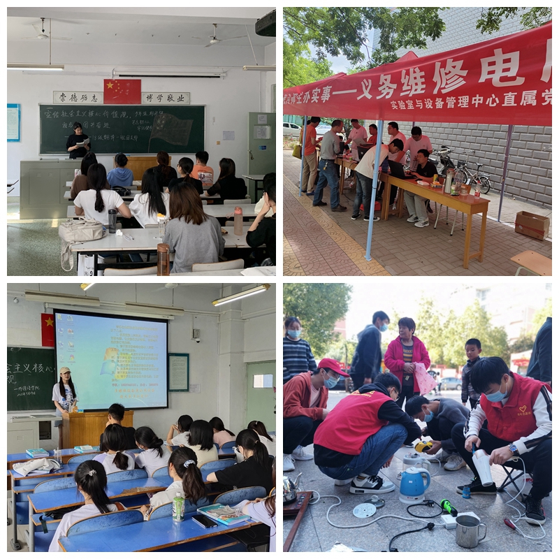 文史与传媒学院开展“讲党史故事,拾红色记忆”讲党史故事微视频大赛、拍摄制作“红色小课堂”《走进大别山——新县》专题微视频、录制红色经典有声作品《毛泽东诗词》;医学院开展“弘扬社会主义核心价值观”主题党日活动、主题班会、微电影展播、国旗下的演讲、“小医新榜样”;电气与机械工程学院开展典型人物宣传推荐、榜样在身边系列讲座、家电义务维修志愿服务活动;化工与材料学院开展“弘扬社会主义核心价值观,寻找身边最美的她和他”“核心价值观作品接力”“我为同学做件事”之就业帮扶活动、红色观影活动;信息工程学院、外国语学院、国际教育学院等13个二级学院也充分利用微信、微博、网站、宣传展板等宣传平台,通过线上、线下进行全方位、多渠道的开展主题宣传活动。