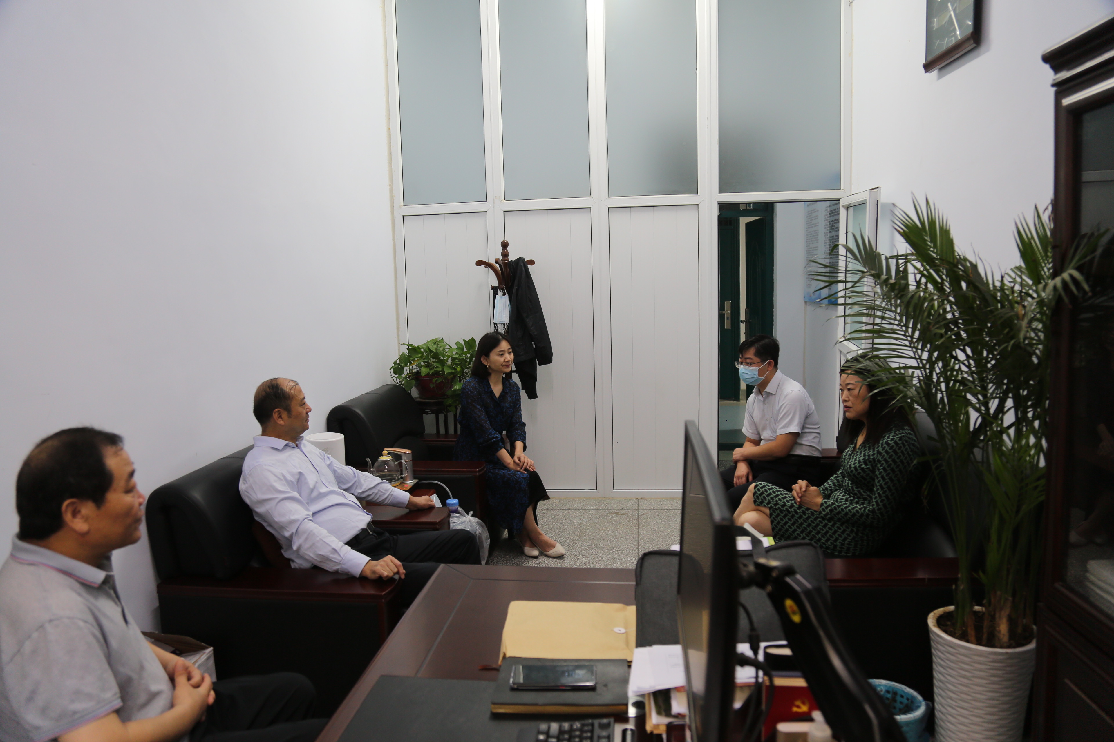 校领导在多媒体观察室检查线上教学运行情况