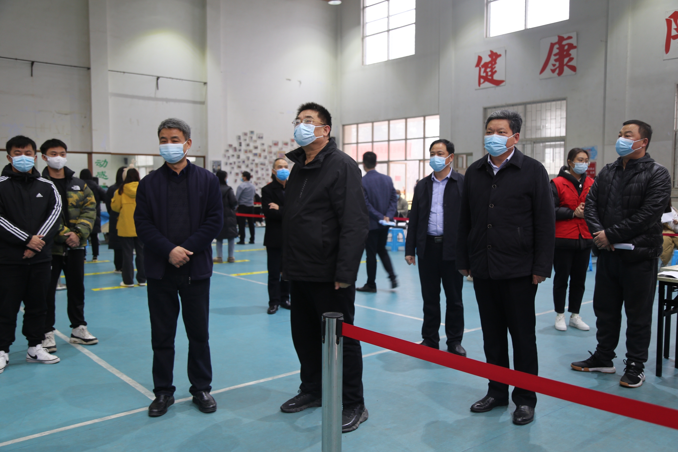 12月10日上午,永利官网新冠疫苗加强针接种工作在学校健美操馆正式启动。校党委书记闫纪建、院长岳修峰,副院长崔斌、高金星在相关职能部门负责人陪同下,到接种点现场检查指导疫苗接种工作,看望并慰问接种疫苗的师生和工作人员。