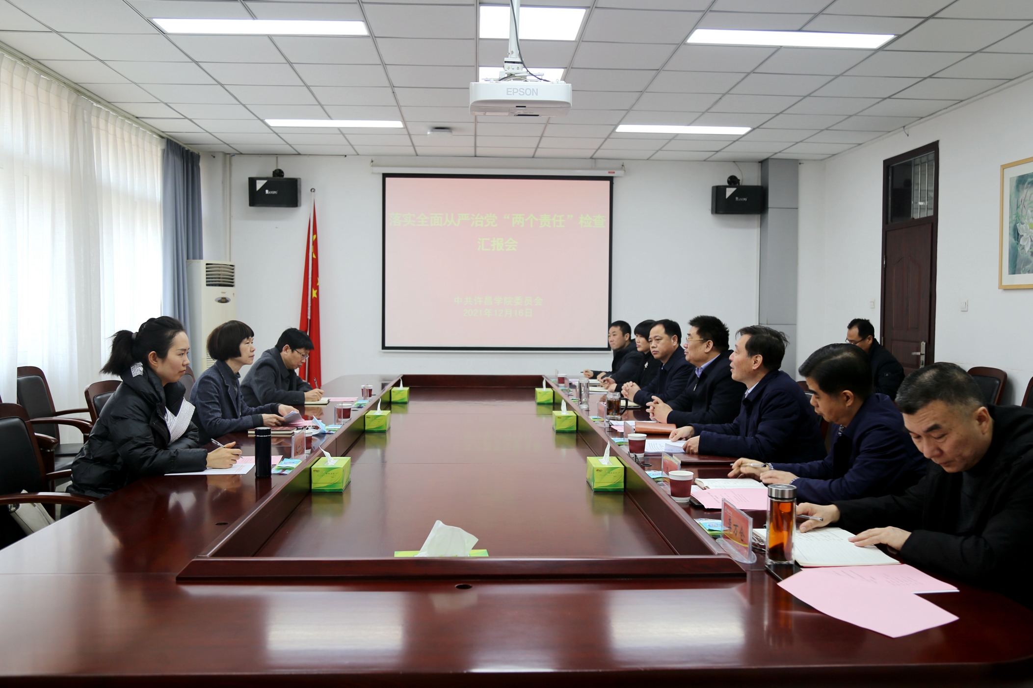 汇报会上,党委书记闫纪建代表学校党委重点从落实全面从严治党主体责任总体情况、贯彻落实全省教育系统全面从严治党工作推进会精神和《关于省管高校全面从严治党“两个责任”落实情况的通报》情况、落实领导干部给学生讲思政课制度规定情况、落实疫情防控工作情况和目前存在的问题及下一步努力方向等五个方面作了具体汇报。闫书记指出,一年来,学校党委在省委、省政府和省委高校工委、省教育厅的正确领导下,坚决贯彻习近平总书记重要指示和党中央决策部署,认真落实上级各项工作要求,把履行全面从严治党主体责任作为重要政治任务,切实加强对全面从严治党工作的领导,聚焦明责、守责、担责、尽责,坚持以党的政治建设为统领,抓实抓牢党的六大建设,统筹推进疫情防控和学校事业发展,党委书记带头履行“第一责任人”职责,班子成员认真履行“一岗双责”,全校上下一体推进不敢腐、不能腐、不想腐工作机制,扎实推进全面从严治党走深走实,管党治党、办学治校能力不断提高,进一步营造了风清气正、干事创业的浓厚氛围,为推动学校事业高质量发展提供了强有力的政治保障、思想保障和组织保障。