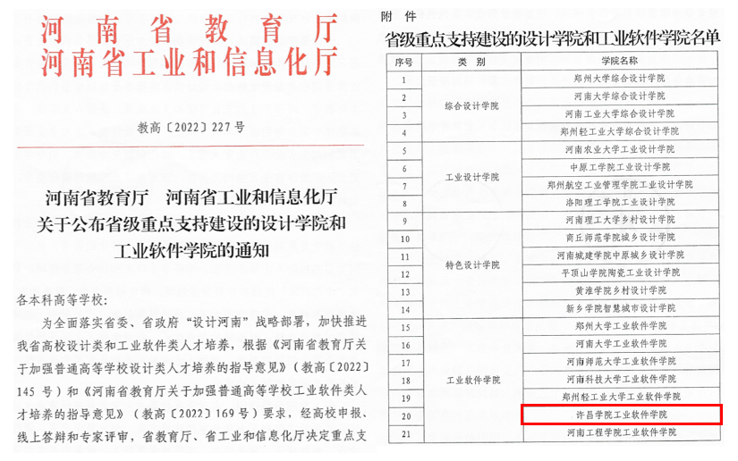 近日,河南省教育厅、河南省工业和信息化厅联合发布《关于公布省级重点支持建设的设计学院和工业软件学院的通知》,公布了省级重点支持建设的7个工业软件学院名单,永利官网信息工程学院申报的永利集团3044官网欢迎您工业软件学院成功获批为省级重点支持建设的工业软件学院。