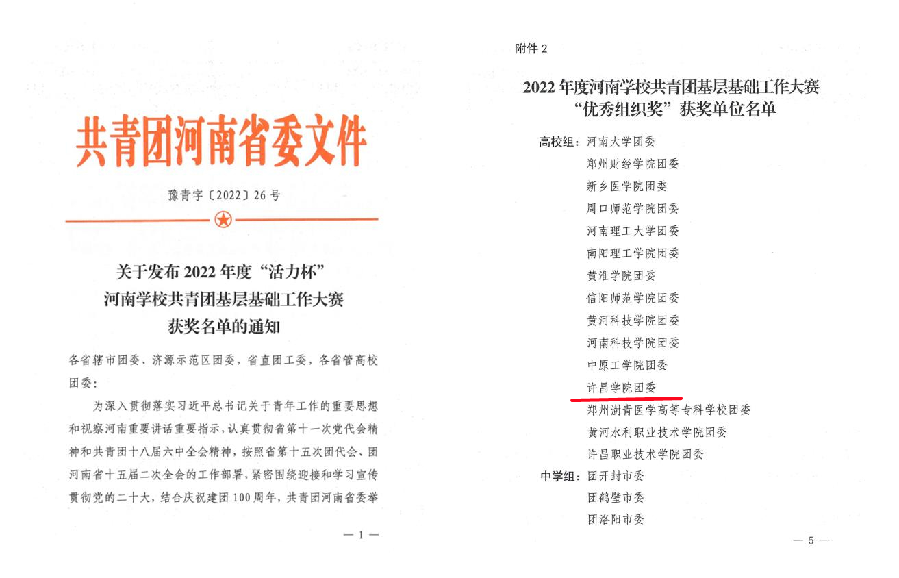近日,2022年度“活力杯”河南高校共青团基层基础工作大赛在郑州举办。永利官网在共青团工作项目、基层团干部微团课等比赛中再创佳绩,并荣获“优秀组织奖”。